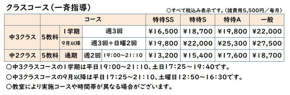 - クラスは、学力別と志望校を考慮して構成します。